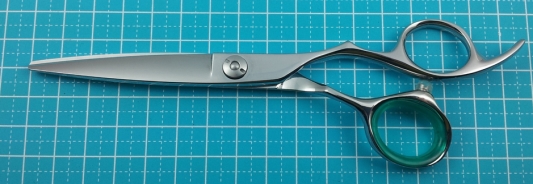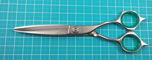 はさみ工房のスライド用シザー、は、ただすべりがいいだけではなく、使い方にあわせて「チョップもするから先端は普通に切れるように」とか、「スライド用の刃と普通の刃を半分ずつにしてくれ」とか、それも「先端15ミリだけ切れるように」というような、細かい指定もOKです。